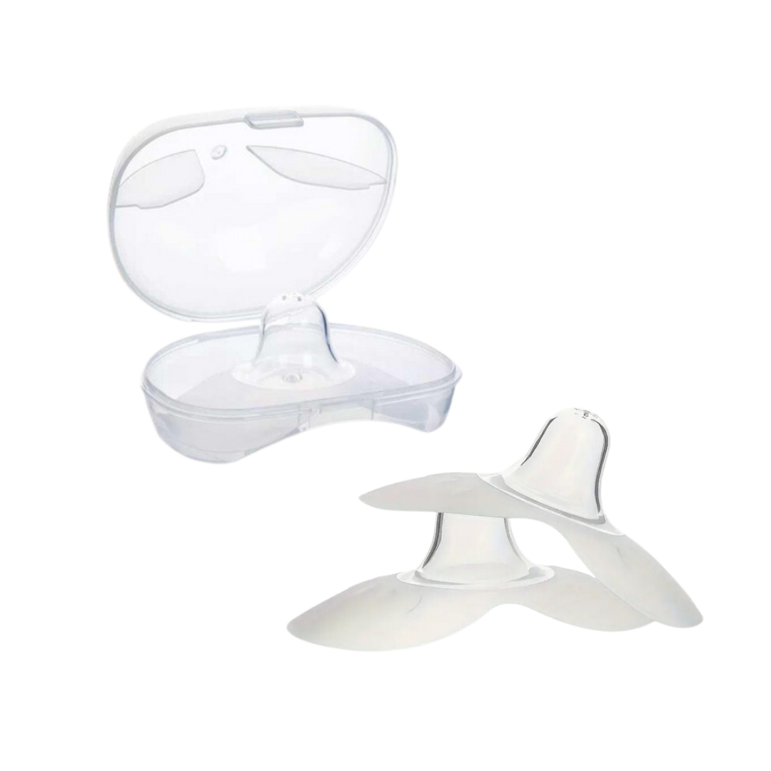 The cherry-shaped nipple shield can be helpful for an infant with sucking difficulties such as tongue-tie. The rounded shape may offer an easier latch for some infants because of a curve that may prevent the infant from slipping down the slope of a conical-shaped shield. Cut out at both the nose and chin area for skin-to-skin contact.